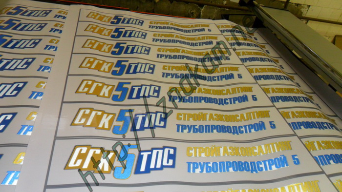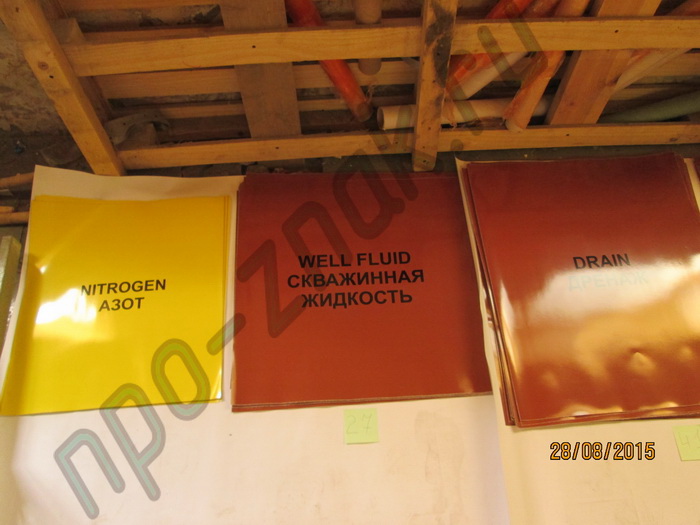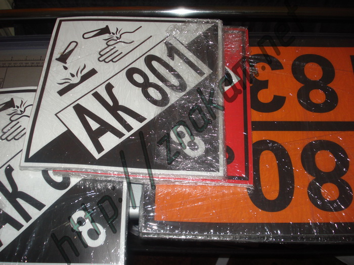Знаки, таблички опасности: "Знаки опасности", таблички оранжевого цвета "Код опасности и номер ООН", таблички оранжевого цвета "Номер ООН", таблички белого цвета "Номер аварийной карточки" на самоклеящихся материалах.