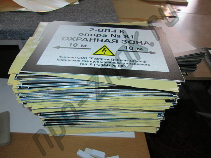 Мы не интернет-магазин, мы - производство, поэтому можем изготовить таблички любых интересующих Вас вариантов и размеров. Охранная зона воздушных линий электропередач обозначается представленными выше знаками на опорах вл, выполненными в соответствии с "Требованиями к информационным знакам на линиях электропередачи и их установке" информационного приложения к ПУЭ. Как правило, информационные знаки для линии электропередачи (таблички ПУЭ или знаки вл) заказывают на пластике, металле, пленке (если основа уже есть), оцинковке. На стойке, с кронштейнами или отверстиями под крепеж. К каждому заказу у нас индивидуальный подход. Пришлите заявку на info@znakam.net или позвоните по телефонам (495) 765-24-05 (499) 408-18-37 Наши специалисты проконсультируют Вас по стоимости и срокам. |